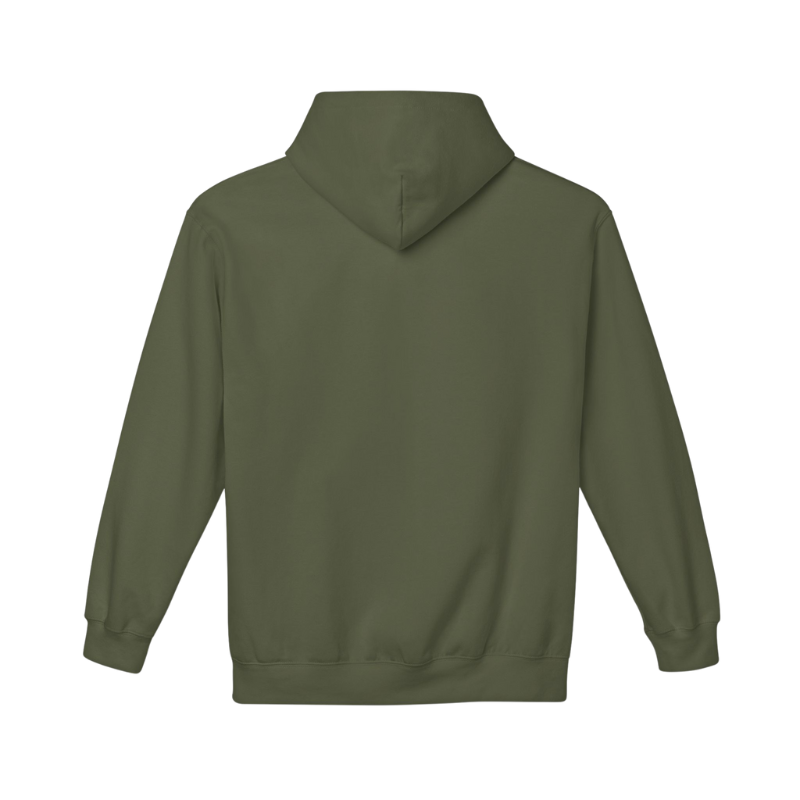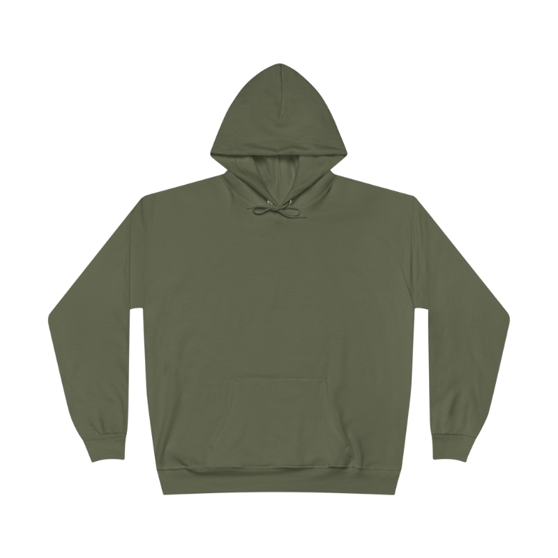 This rugged, military‑inspired hue pairs timeless style with serious function. At 300 GSM, its 50/50 cotton‑poly blend locks in warmth without added bulk—perfect for layering or wearing on its own. Built to Withstand Everyday Wear. Every stitch is engineered for long‑lasting performance: Double‑Stitched Reinforcements. All sleeves, seams, and hems feature reinforced double‑stitching to resist snags, pilling, and wear—so you can wash and wear it season after season. Premium 50/50 Polycotton Blend. 50% Cotton: Soft, breathable comfort. 50% Polyester: Maintains shape and resists shrinking. Thoughtful Features for Everyday Function. Designed with practical details you’ll reach for again and again:. Adjustable Hood with Tonal Drawcord: Customize your coverage and block out the chill.. Kangaroo Pockets: Keep your hands warm or stash small essentials on the go.. Rib‑Knit Cuffs & Hem: Lock in heat and maintain a clean, snug silhouette. Inclusive Unisex S–2XL Sizing. Available in Small, Medium, Large, XL, and 2XL, this hoodie’s unisex cut flatters every body type—no guesswork, no returns.